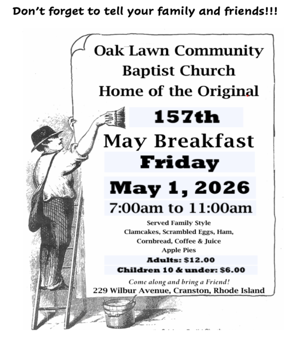 Oak Lawn Community Baptist Church is located at 229 Wilbur Avenue in Cranston. We warmly invite you to worship with us on a Sunday morning at 9:30 am. Until then, may our Lord and Savior