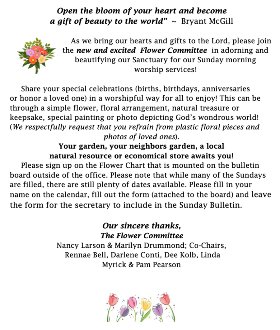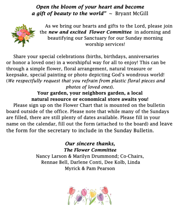 If you want to consider joining the Board and would like information regarding the Deacon’s duties or have any questions, please talk to any one of the Board of Deacons members — Mike Moore, Chuck Jones or John McCann.